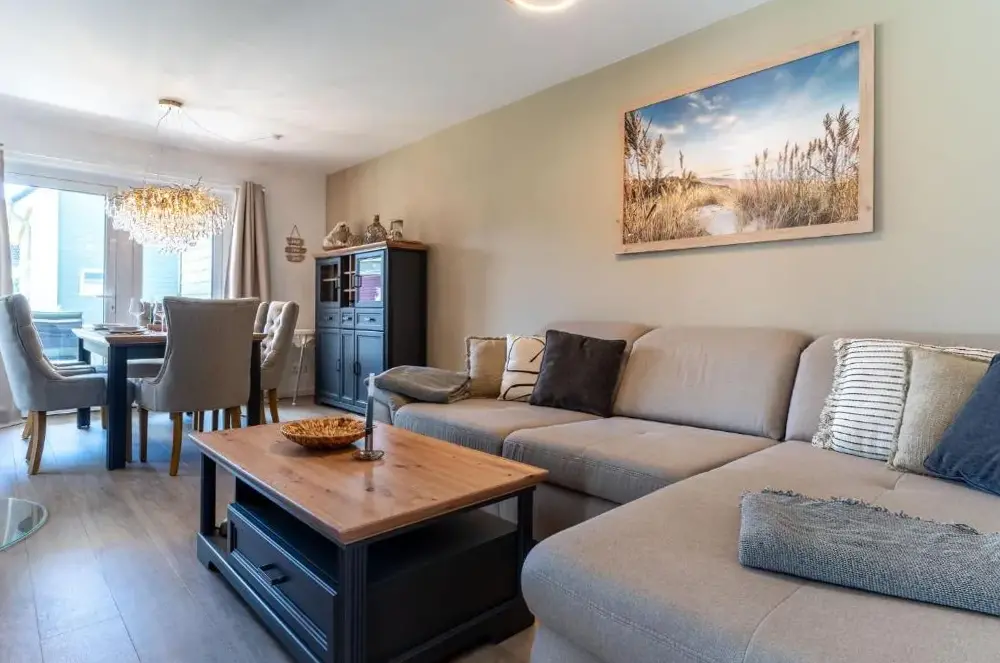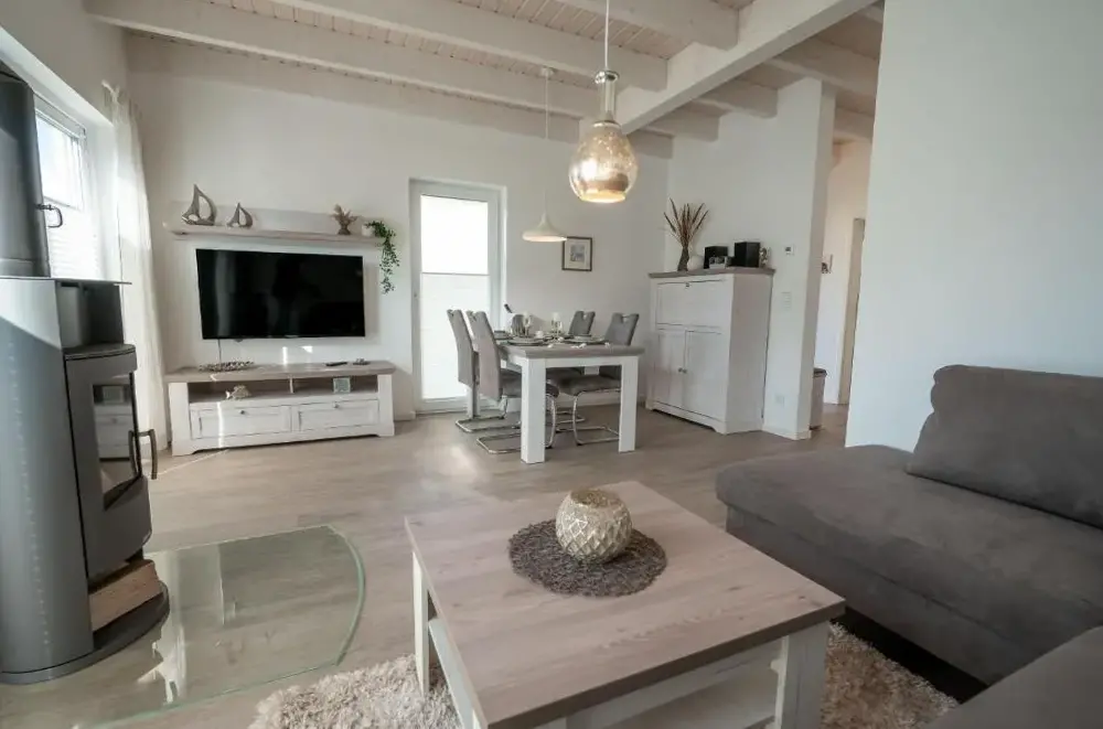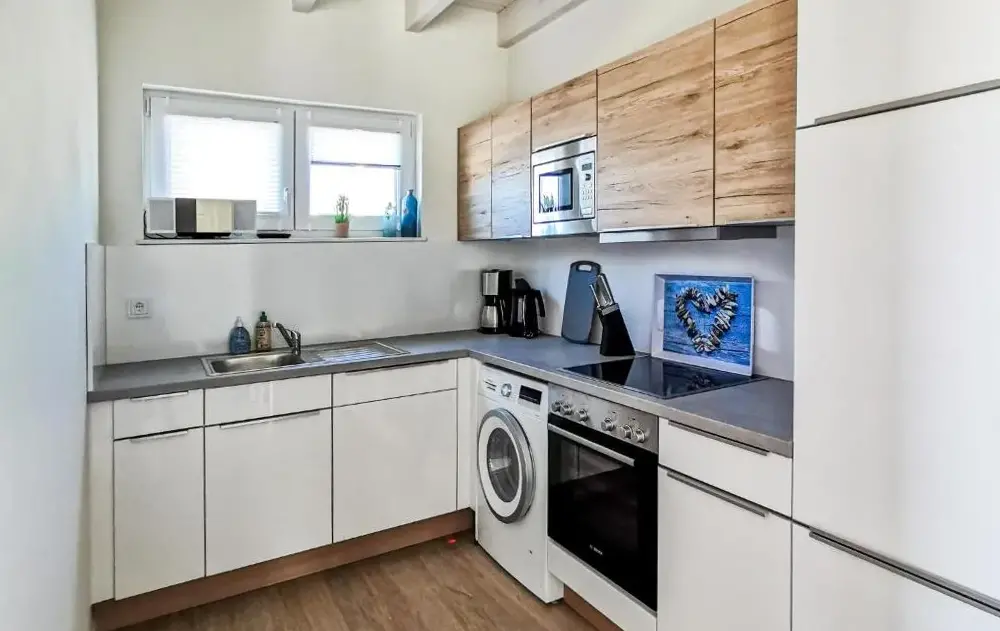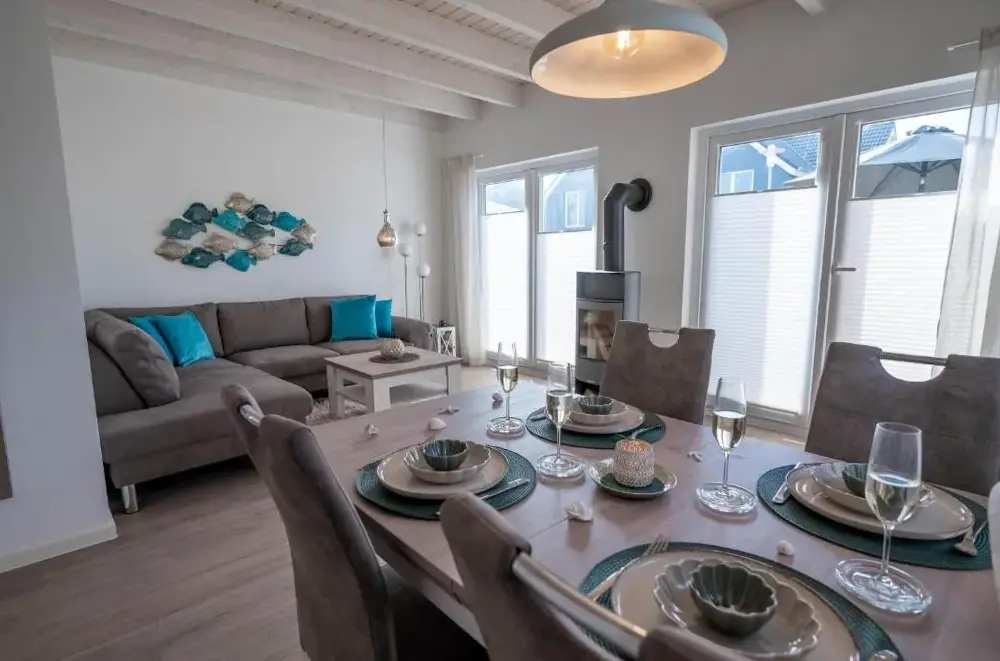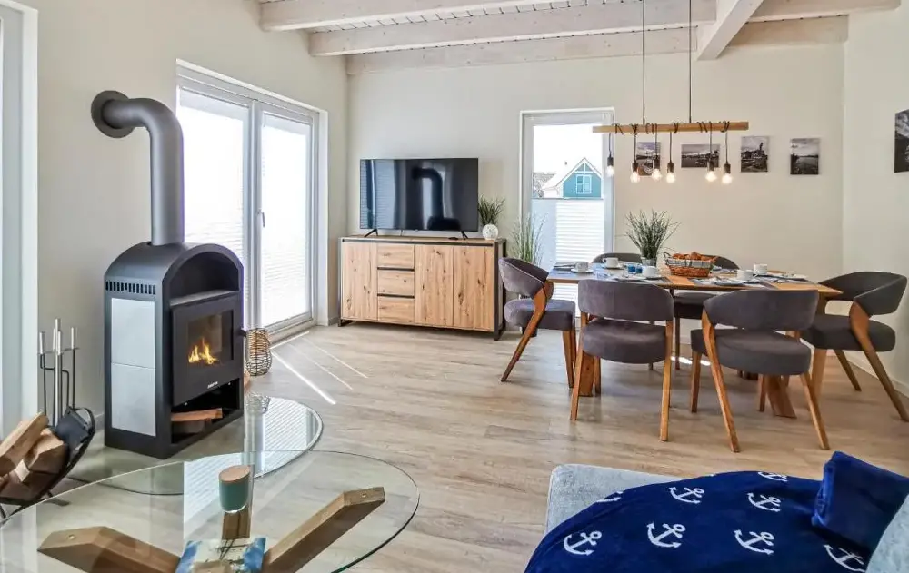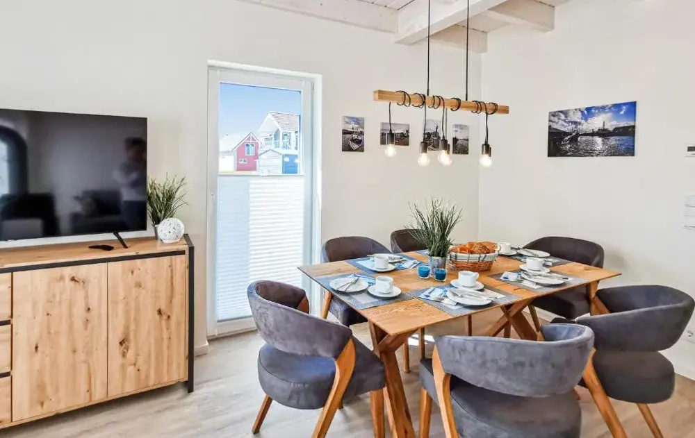 Mere information om Ferienwohnung Küstenkiste Büsum ⇒ Ihr Traumurlaub an der NordseeTiny-House Piggeldy i Schweinedeich, 25761 Büsum, Tyskland, er et komfortabelt sommerhus med to soveværelser og et privat badeværelse. Enheden på stueetagen har en terrasse med udsigt over haven samt en privat indgang. Køkkenet er fuldt udstyret med kaffe- og vaskemaskiner, opvaskemaskine og alle nødvendige tilberedningsudstyr. Gæster kan bruge opholdsområdet og spisebordet til at slappe af.