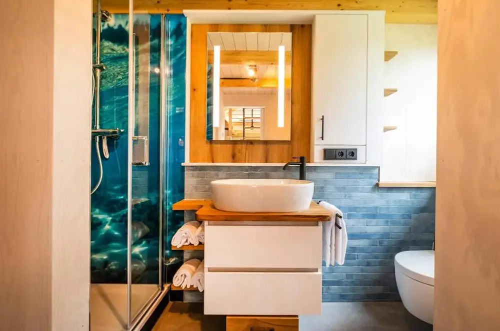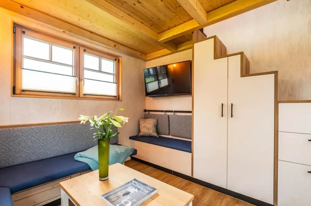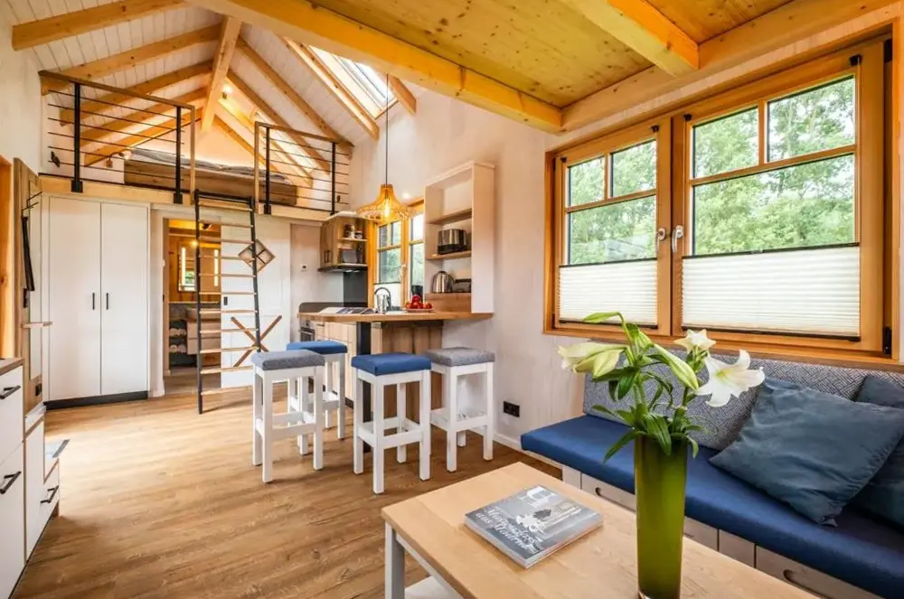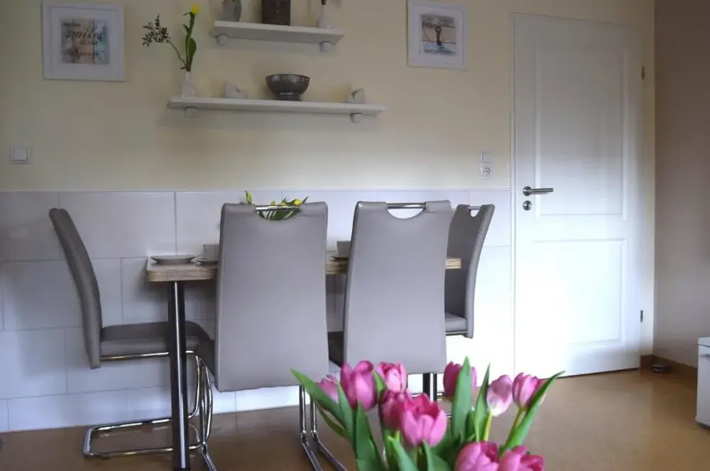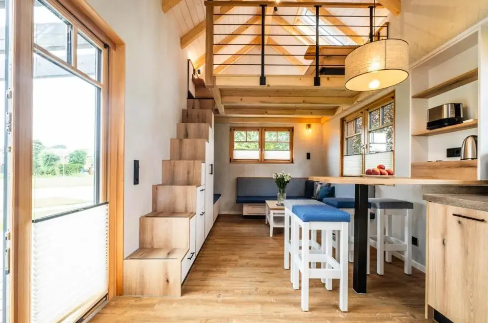 Mere information om Ferienwohnung Küstenkiste Büsum ⇒ Ihr Traumurlaub an der NordseeTiny-House Piggeldy i Schweinedeich, 25761 Büsum, Tyskland, er et komfortabelt sommerhus med to soveværelser og et privat badeværelse. Enheden på stueetagen har en terrasse med udsigt over haven samt en privat indgang. Køkkenet er fuldt udstyret med kaffe- og vaskemaskiner, opvaskemaskine og alle nødvendige tilberedningsudstyr. Gæster kan bruge opholdsområdet og spisebordet til at slappe af.