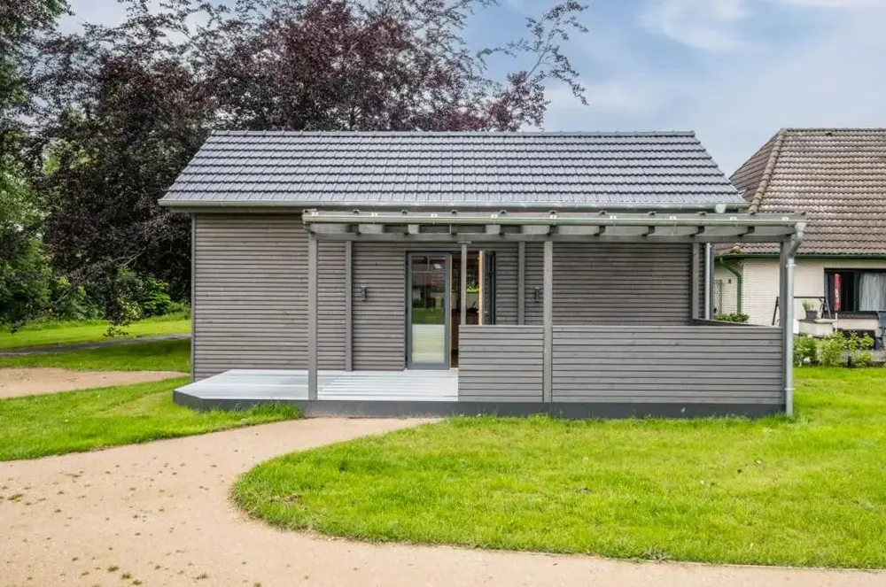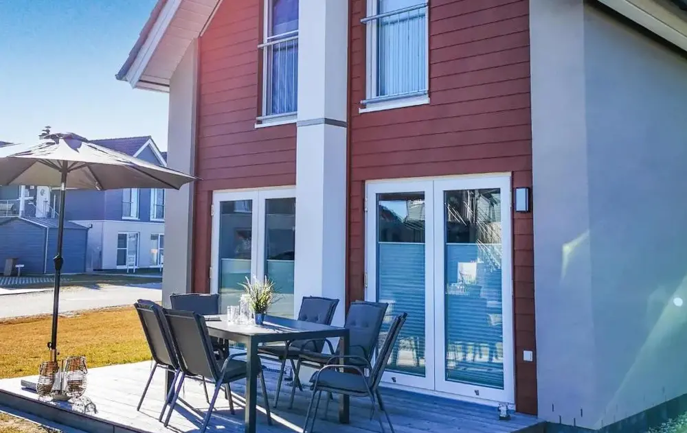Mere information om FischerhütteTiny-House Frederick i Schweinedeich, Büsum, Tyskland, er et komfortabelt sommerhus med to soveværelser og et badeværelse. Enheden i stueetagen har en terrasse med udsigt over haven samt en privat indgang. Køkkenet er fuldt udstyret med kaffe- og teapparat, opvaskemaskine samt vaskemaskine. Der er et opholdsværelse og et spisebord til brug. Det ligger på ca.