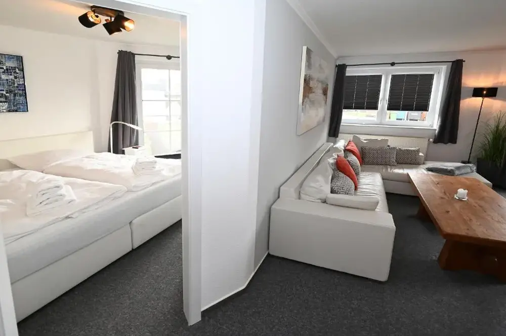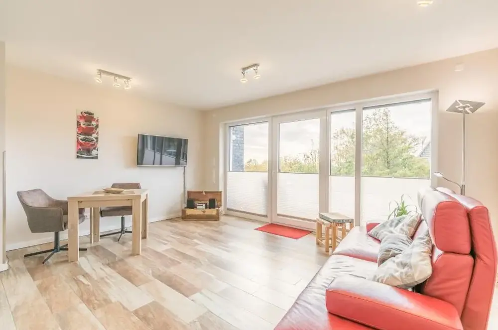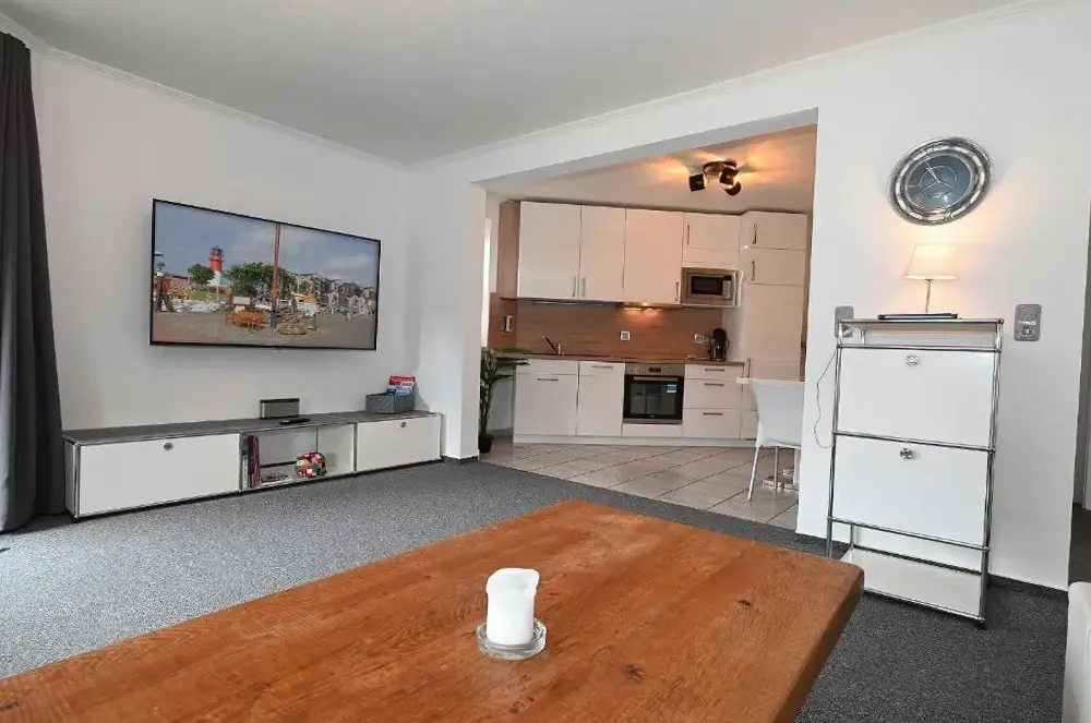 Mere information om Leuchtturm Büsum, EXKLUSIV, SAUNAAnke i Büsum er en komfortabel lejlighed med to soveværelser og et privat badeværelse, beliggende på Tertius-Törn 33, 25761 Büsum, Deutschland. Lejligheden findes i stueetagen og indeholder en terrasse samt gratis WiFi. Derudover er der et moderne udstyr inkluderet i køkkenet, herunder kaffemaskine, opvaskemaskine og mikrobølgeovn. Lejligheden tilbyder også et spisebord, sofa og TV.