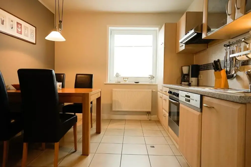 Mere information om "Sand & Meer" Haus Sand Und Meer, Whg 4, 1 OgFerienwohnung in Büsum er en komfortabel bolig i det centrale Büsum, der kombinerer plads og funktion. Lejligheden har et stueområde samt en balkon, hvilket giver mulighed for både indendørskvalitet og udsigt til havet. Køkkenet er utyldt med en komfur, brødrister, elektrisk kedel og kaffemaskine, så gæster kan lave mad hjemme. Derudover findes et privat badeværelse med brusebad og hårtørrer.