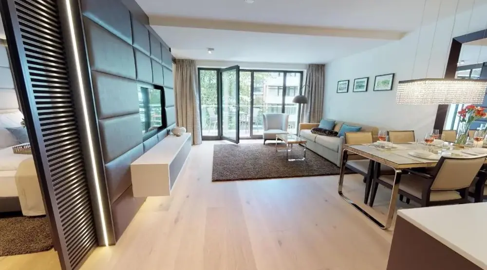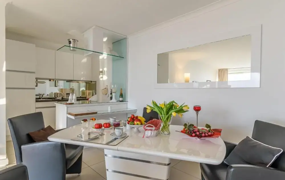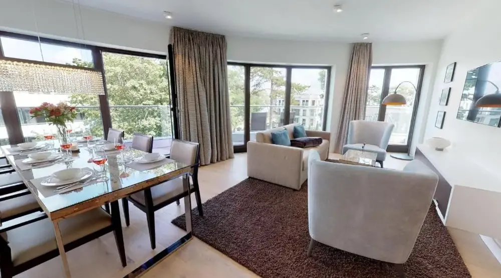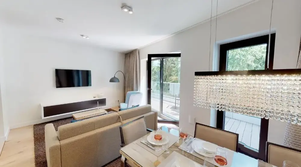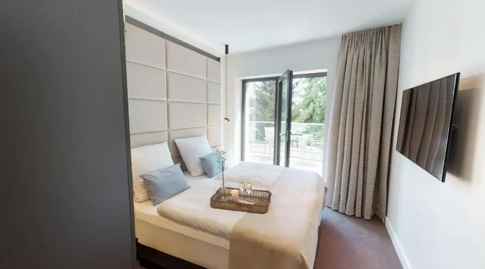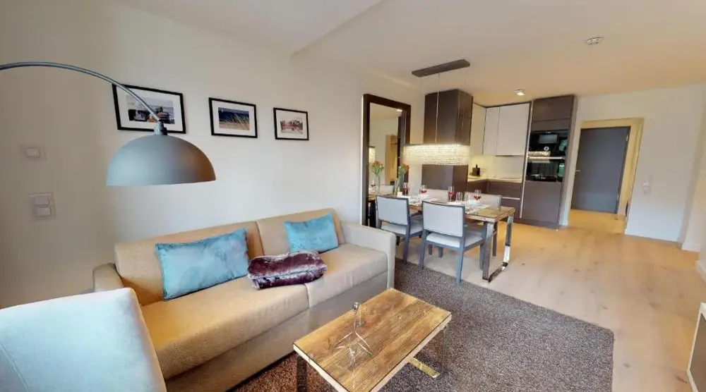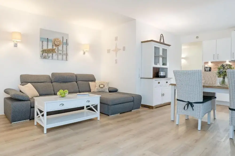 Mere information om Domizil Strandburg Domizil Strandburg Appartement 09White Pearl Apartment 3.11 er en komfortabel bolig i Timmendorfer Strand, der kombinerer plads og funktionel design. Lejligheden har et soveværelse og en stue samt et fuldt udstyret køkken med moderne apparater. Derudover findes en balkon, vaskemaskine og en spiseplads med bord. Boligen er placeret på Strandallee 44 og ligger kun 100 meter fra Timmendorfer Beach.