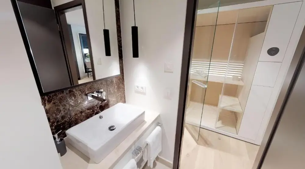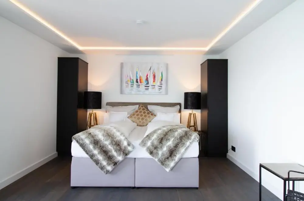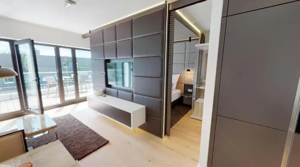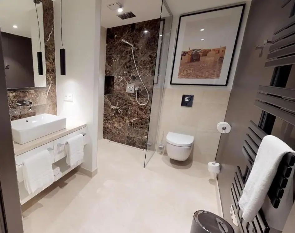 Mere information om Paradise Suite - Penthouse mit MeerblickWhite Pearl Apartment 1.04 er en komfortabel bolig i Timmendorfer Strand, der kombinerer funktionel design med moderne udstyr. Lejligheden består af et soveværelse og et badeværelse samt indeholder en balkon, vaskemaskine og et fuldt udstyret køkken med moderne apparater. Derudover findes der en sauna til afslapning og gratis wifi.