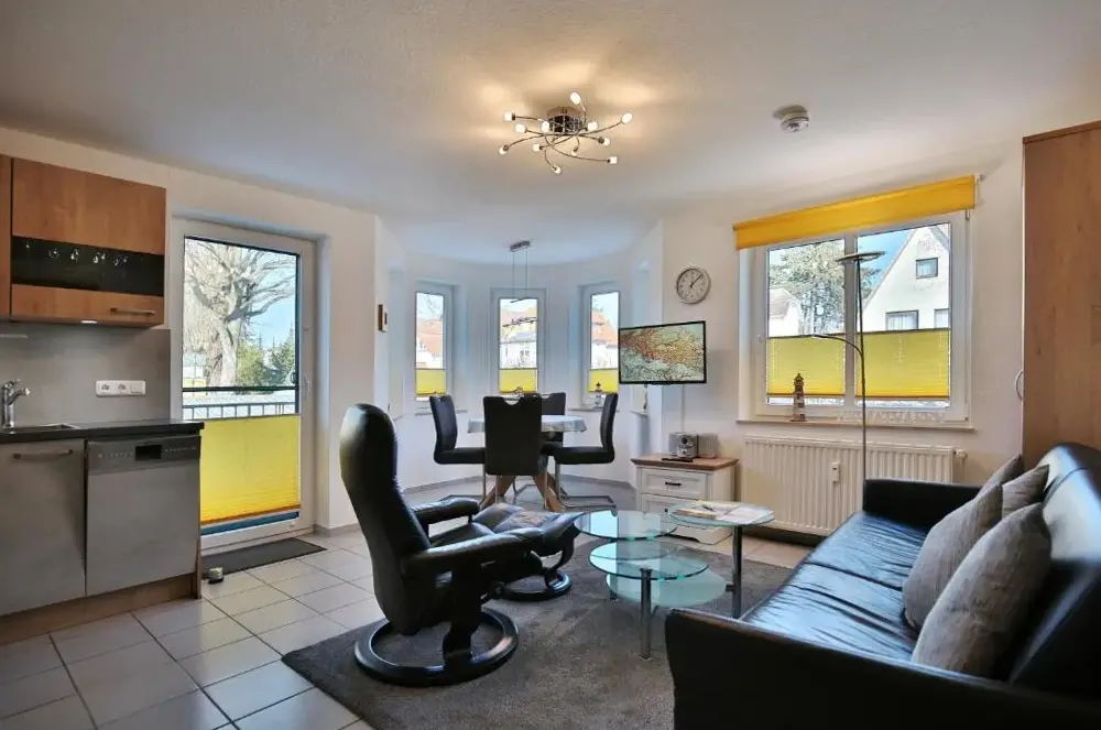 Mere information om White Pearl Apartment 1.04White Pearl Apartment 3.12 er en rummelig bolig i Timmendorfer Strand, som kombinerer funktionel opstilling med behagelig atmosfære. Lejligheden har et soveværelse og en stue samt indeholder en balkon, vaskemaskine og et fuldt udstyret køkken med moderne apparater. Derudover findes et spisebord, sovesofa og et opholdsområde, hvilket gør det ideelt til både familieophold og ensomme rejser.