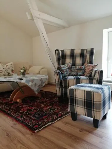 Weitere Informationen zu Glücksferien- LöwenzahnDie Alte Stellmacherei - Ferienwohnung 2 in Riepsdorf bietet eine komfortable Unterkunft mit einer Wohnung, die ein Schlafzimmer sowie ein Wohnzimmer umfasst. Die Ferienwohnung verfügt über eine Terrasse und einen Garten, die zum Entspannen einladen.