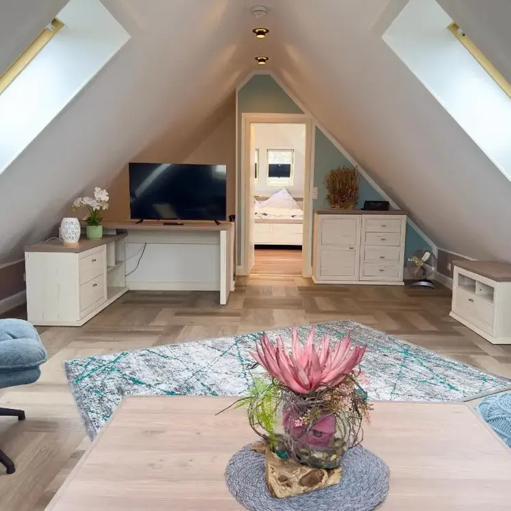 Weitere Informationen zu Hoern 2Glücksferien- Löwenzahn in Glücksburg bietet eine komfortable Ferienwohnung mit einem Schlafzimmer und Wohnzimmer. Die Wohnung verfügt über eine vollständig ausgestattete Küche mit Essbereich sowie ein Sofa-Bett. Im Badezimmer steht eine begehbare Dusche zur Verfügung, ergänzt durch Parkettböden.
