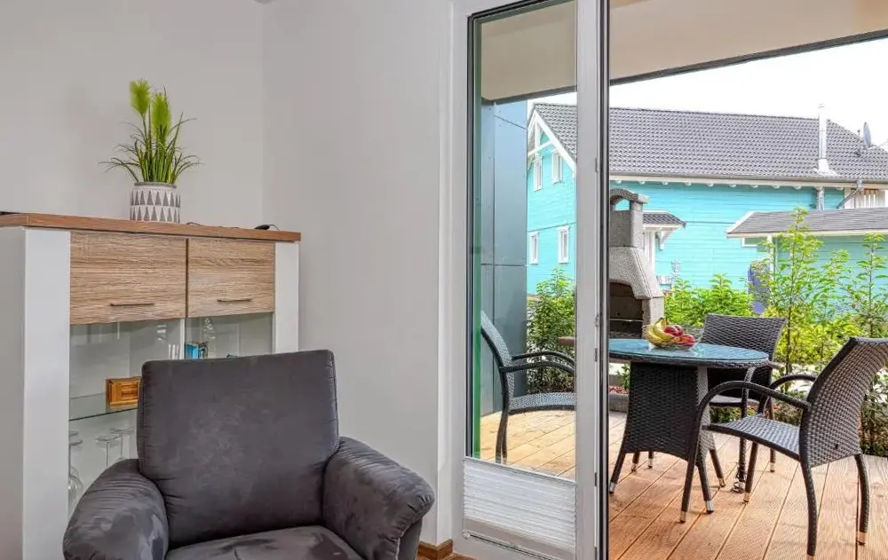 Weitere Informationen zu "Dünenpark Heiligenhafen", Haus "Dünengras", Wohnung "Dünenperle" Nr. 14Das Ferienhaus 5093 - Kirchenweg 2a in Dahme bietet komfortable Unterkunft für bis zu vier Personen. Mit zwei Schlafzimmern und einem Bad ist es ideal für Familien oder Paare. Die Wohnung im Erdgeschoss verfügt über einen separaten Zugang sowie eine Terrasse mit Ausblick auf ein Wahrzeichen. Im Außenbereich gibt es einen Essbereich, Gartenmöbel und eine Kaffeemaschine.