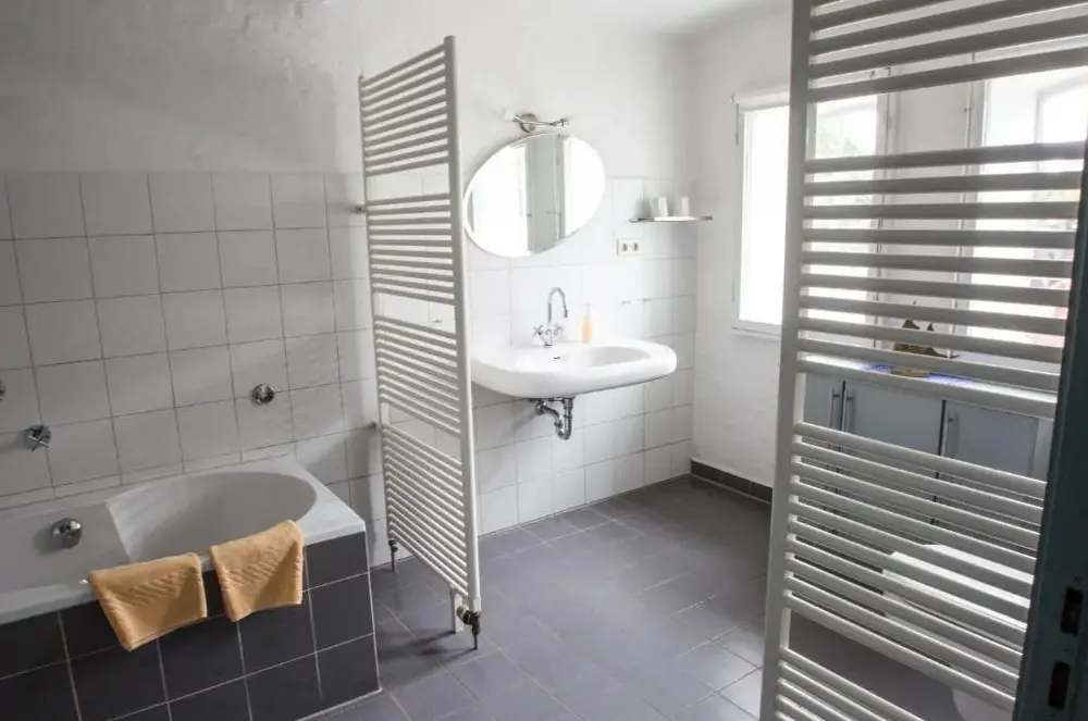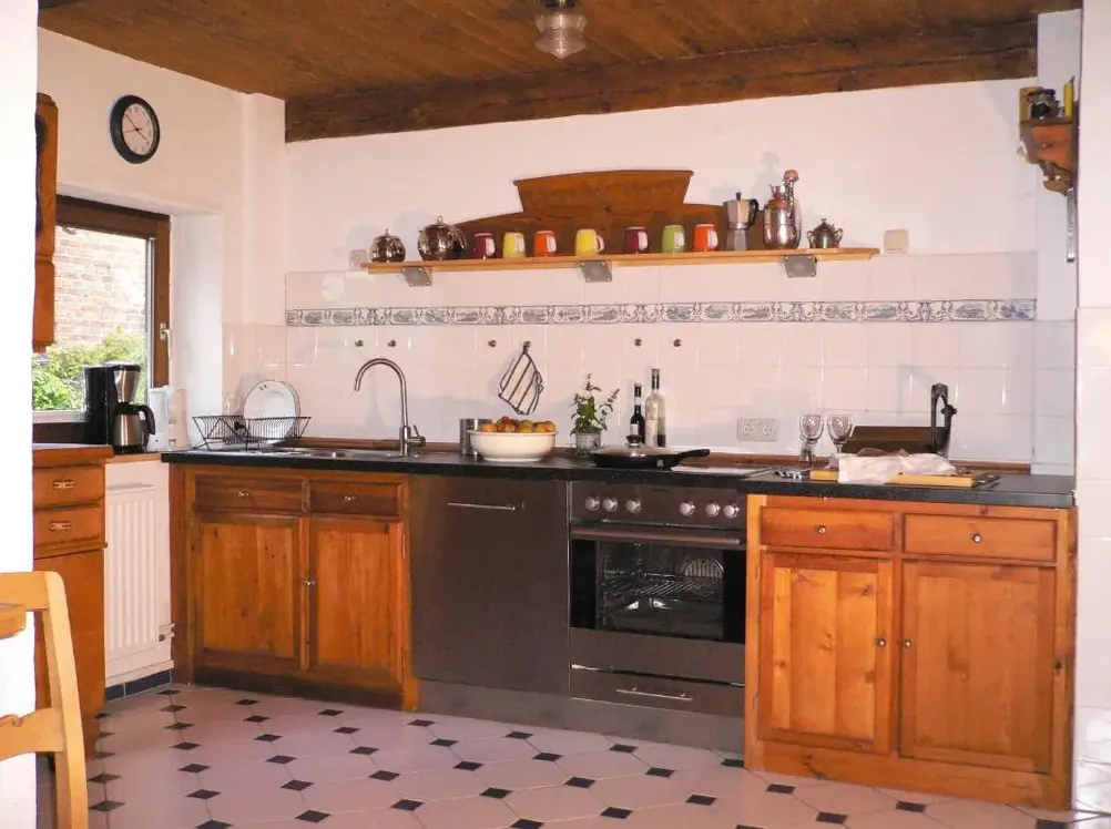 Weitere Informationen zu Gästehaus Hemmerdeich-alte SchuleEider-Domizil No.2 in Bodderweg 1, 25870 Oldenswort, Deutschland, bietet geräumige Unterkünfte mit vier Schlafzimmern und zwei Badezimmern. Die Wohnung verfügt über ein Wohnzimmer mit bequemem Sofa und einem komfortablen Fernseher sowie eine voll ausgestattete Küche inklusive Kühlschrank, Mikrowelle, Geschirrspüler, Ofen und Waschmaschine.
