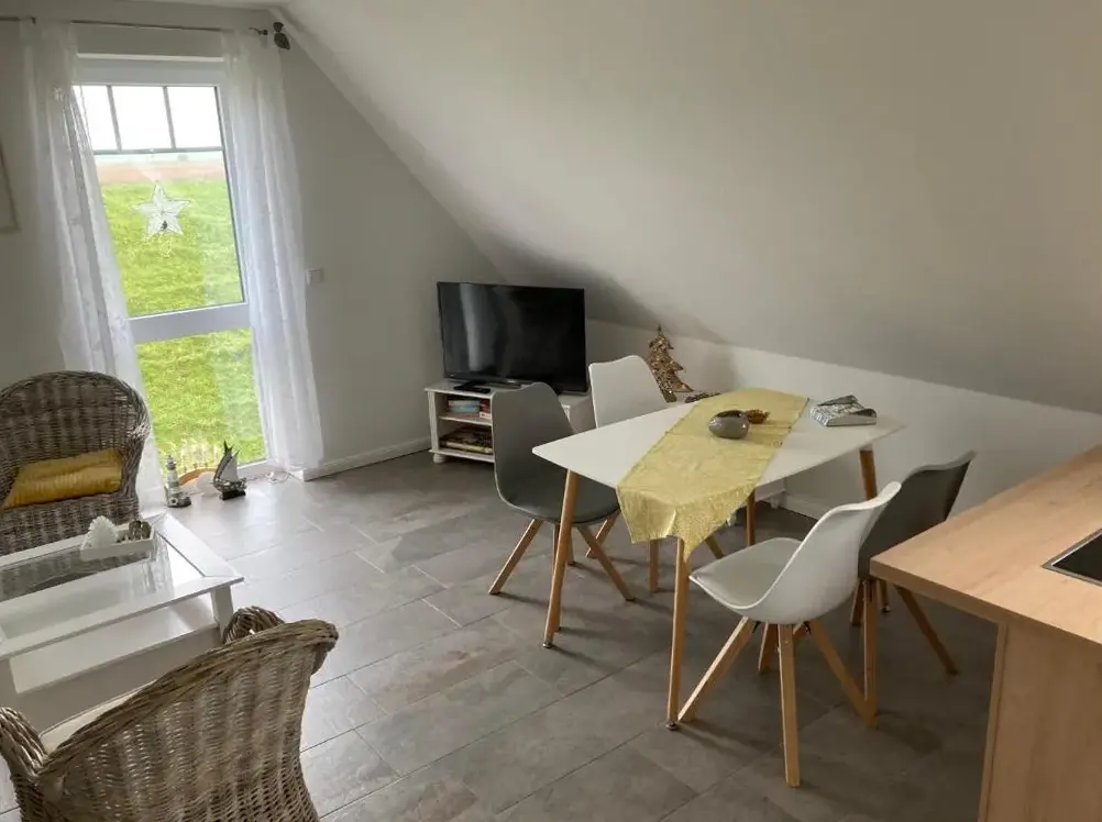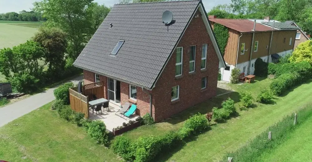 Weitere Informationen zu Ferien Wohnung -LeuchtturmDoktors Hus in Oldenswort bietet gemütliche Unterkunft mit zwei Schlafzimmern sowie Garten und Terrasse. Das Ferienhaus verfügt über moderne Ausstattung wie eine vollständig eingerichtete Küche, Waschmaschine, Kamin und Grill. Im Inneren gibt es einen Essbereich, Sofa und Fernseher. Auf der Terrasse finden Gäste Platz zum Entspannen mit Outdoor-Möbeln und einem Geschirrspüler.