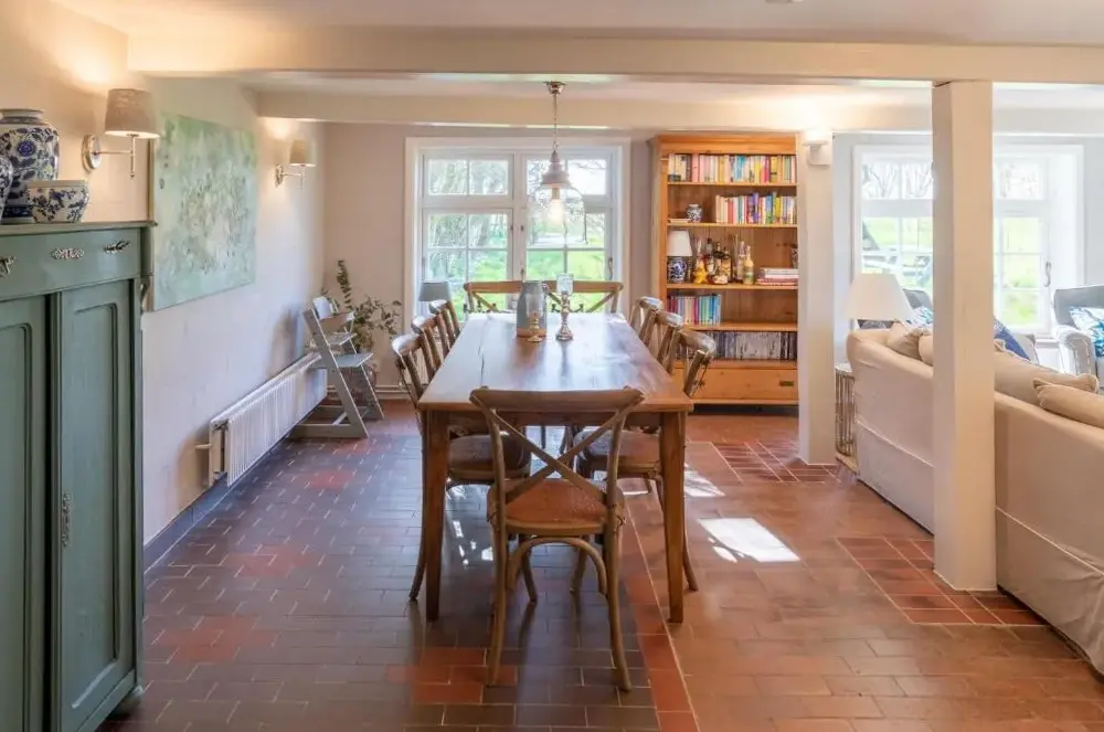 Der Ferienhof Friccius in Schülp ist eine ideale Unterkunft für Familien und Naturliebhaber. Das Ferienhaus verfügt über einen eigenen Garten sowie kostenlose WLAN-Zugangs-möglichkeit. Auf der Terrasse kann man entspannen, während die Kinder auf dem Spielplatz unterhalten werden oder Grillgerichte zubereiten.