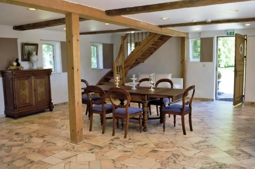 Weitere Informationen zu Ferienhaus MagdaDe Heuhoff-Hedwigsruh in Stadum ist eine gemütliche Ferienwohnung mit eigenständigem Bad, vollausgestatteter Küche und Aussicht auf den Garten. Die Unterkunft verfügt über eine Terrasse sowie einen Balkon, die zum Entspannen einladen. Zu den weiteren Ausstattungsmerkmalen gehören ein Kamin im Freien und ein Spielzimmer.