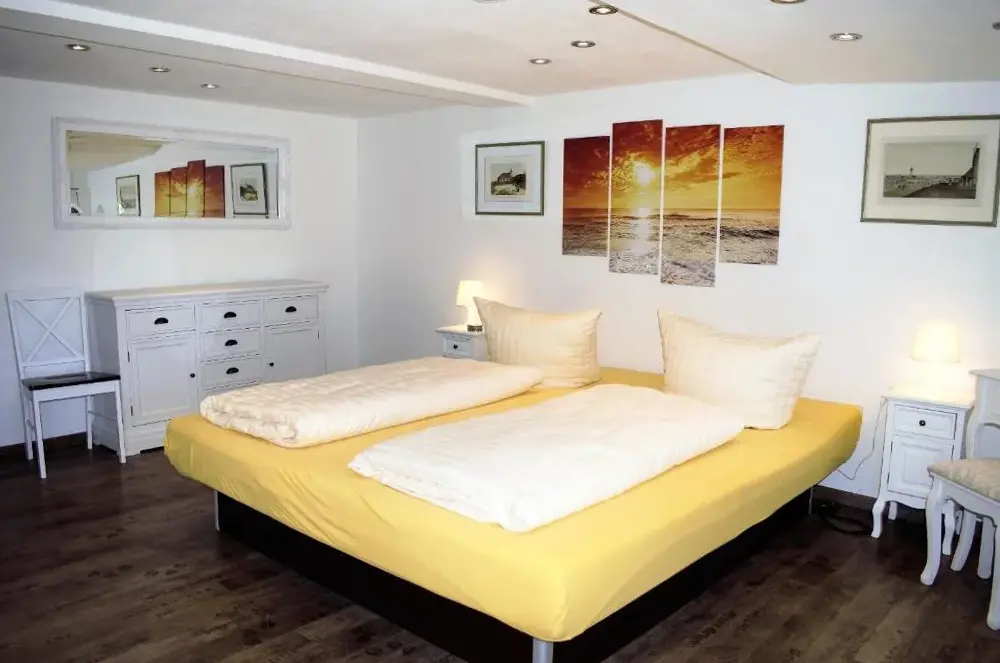 Weitere Informationen zu Ferienwohnung Herzverloren StadumDie Ferienwohnung Junimond Stadum befindet sich in Fresenhagen 11, 25917 Stadum, Deutschland. Diese geräumige Unterkunft verfügt über zwei Schlafzimmer und ein Wohnzimmer sowie eine moderne Ausstattung mit vollständiger Küche, Kaffeemaschine, Geschirrspüler und Mikrowelle. Die Wohnung im Erdgeschoss bietet zudem eine Terrasse und einen Garten zum Entspannen.