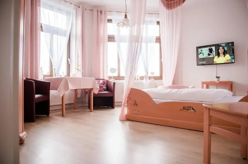 Weitere Informationen zu Landhaus Ferien OstseeAllmanns-Kroog in Sterup ist ein 3-Sterne-Hotel, das in einem historischen Gebäude untergebracht ist. Die Unterkunft bietet komfortable Zimmer mit privaten Badezimmern, hypoallergener Bettwäsche sowie Schalldämpfung. Gäste profitieren von einer sonnigen Terrasse, einem weitläufigen Garten und verschiedenen Freizeitmöglichkeiten wie Wassersport oder Fahrradverleih.