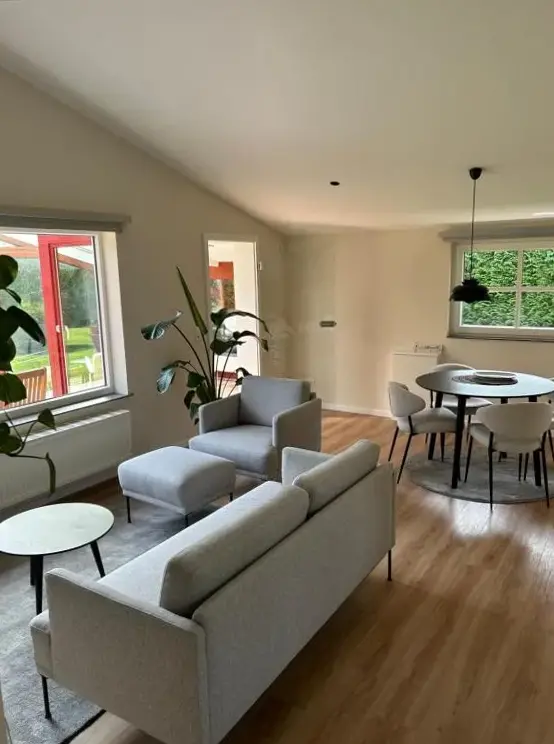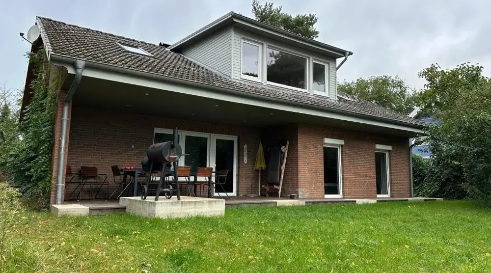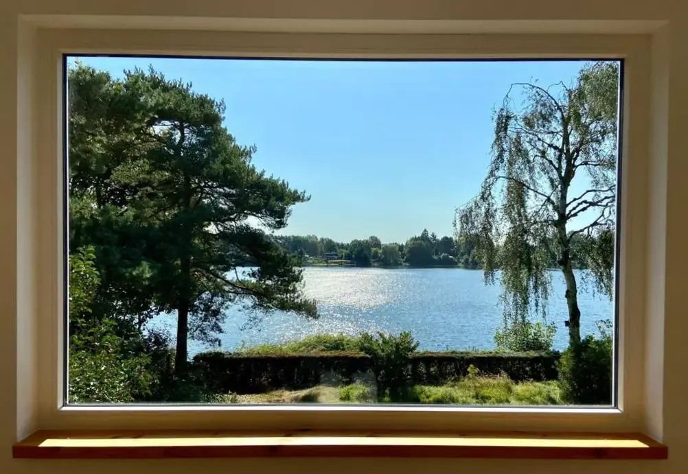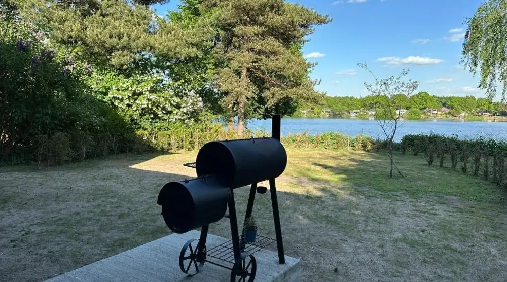 More information about Schwedenhaus auf SeegrundstückAuszeit am Lanzer See in Basedow provides spacious accommodations featuring five bedrooms and two bathrooms. The property includes a living room, dining area, and fully equipped kitchen. Outdoor spaces offer a garden and terrace with scenic lake and garden views, complete with an outdoor fireplace and seating area.