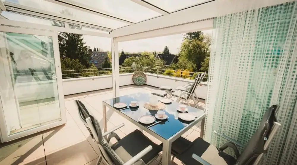 More information about Penthouse OstseepanoramaMokka Suite Design in Neumünster provides a recently renovated apartment featuring two bedrooms, a living room, and a private entrance. The accommodations include a balcony, kitchenette, flat-screen TV, and free WiFi. Guests have access to exceptional facilities like a sun terrace, garden, bar, and shared laundry equipment.