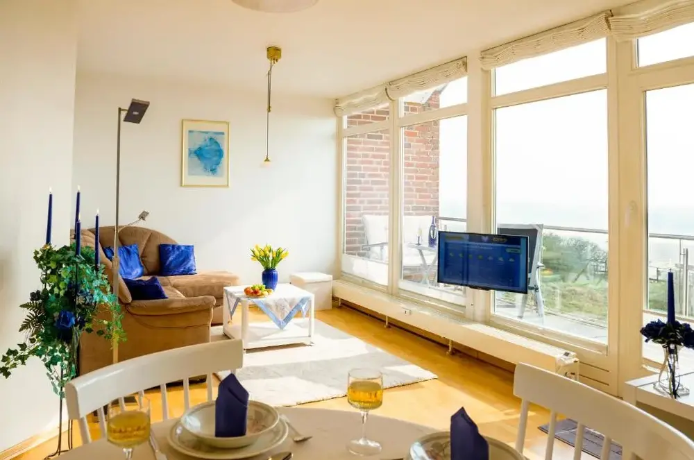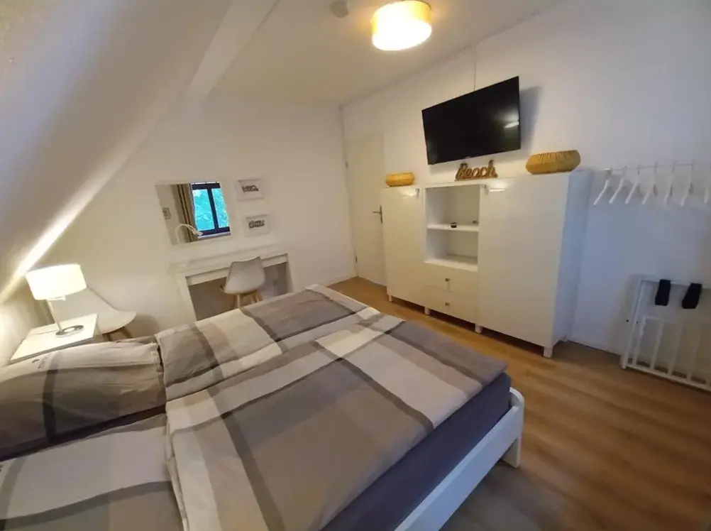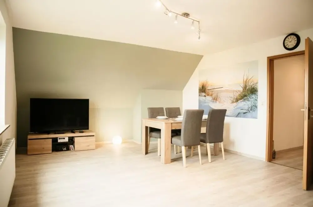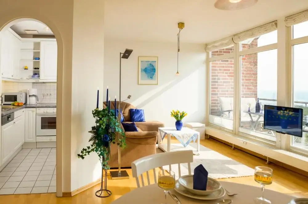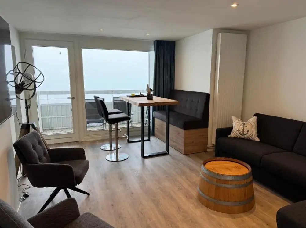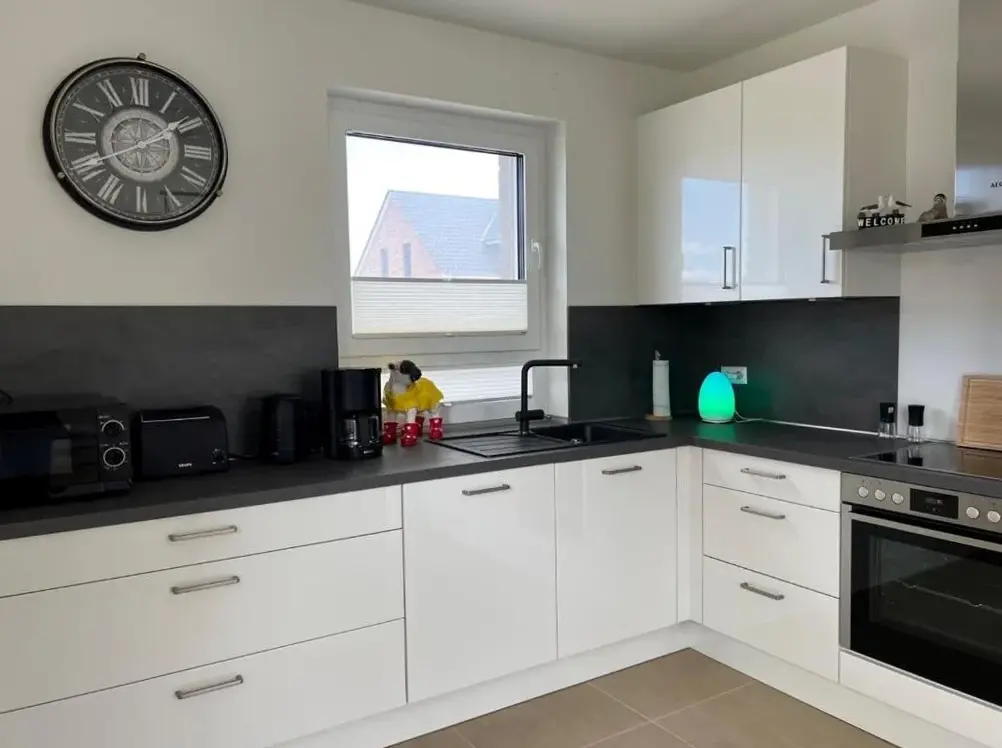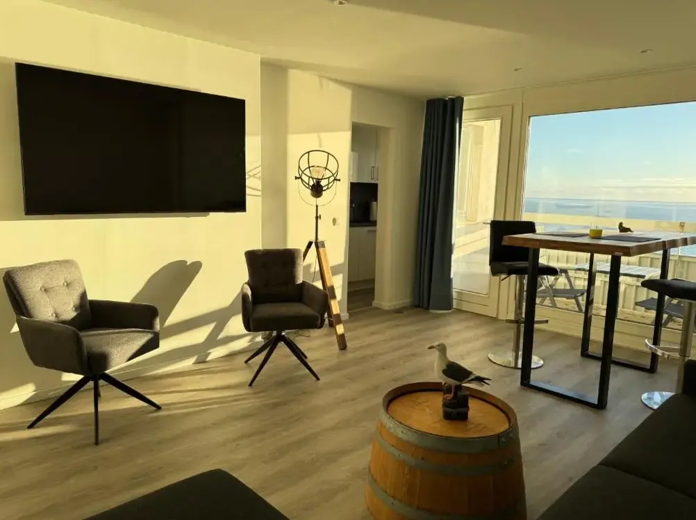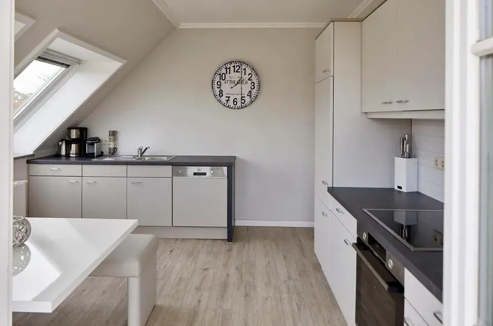 More information about Have-A-Nice-Stay - Nahe Bahnhof - 20 Minuten Nach Hamburg - Trotzdem Ruhig Gelegen - 6 Minuten Zu Fuß Ins Zentrum Ahrensburg - Modern EingerichtetFerienwohnung Sky View in Büsum provides a beachfront retreat with direct access to the shore. The property features a fully equipped kitchen with modern appliances, allowing guests to prepare meals comfortably. Recently renovated, the apartment includes a living room with parquet flooring, a television, and essential amenities like a dishwasher, microwave, and washing machine.