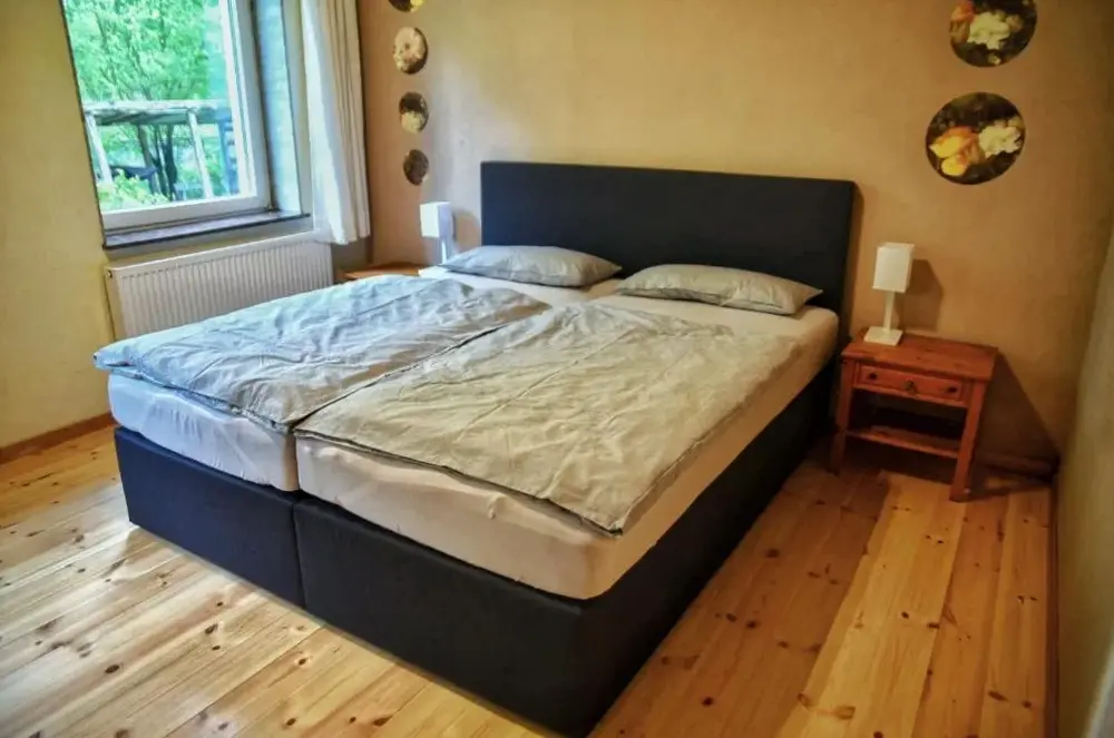 More information about Pension zur Schleuse GARNI am Elbe Lübeck - Kanal in WitzeezeWohnung am Wald is a one-bedroom apartment located in Witzeeze, Germany. This ground-floor unit offers a garden view, featuring a living room with a sofa bed and a separate dining area. The modern amenities include free WiFi, a fully equipped kitchenette, and private entrance.