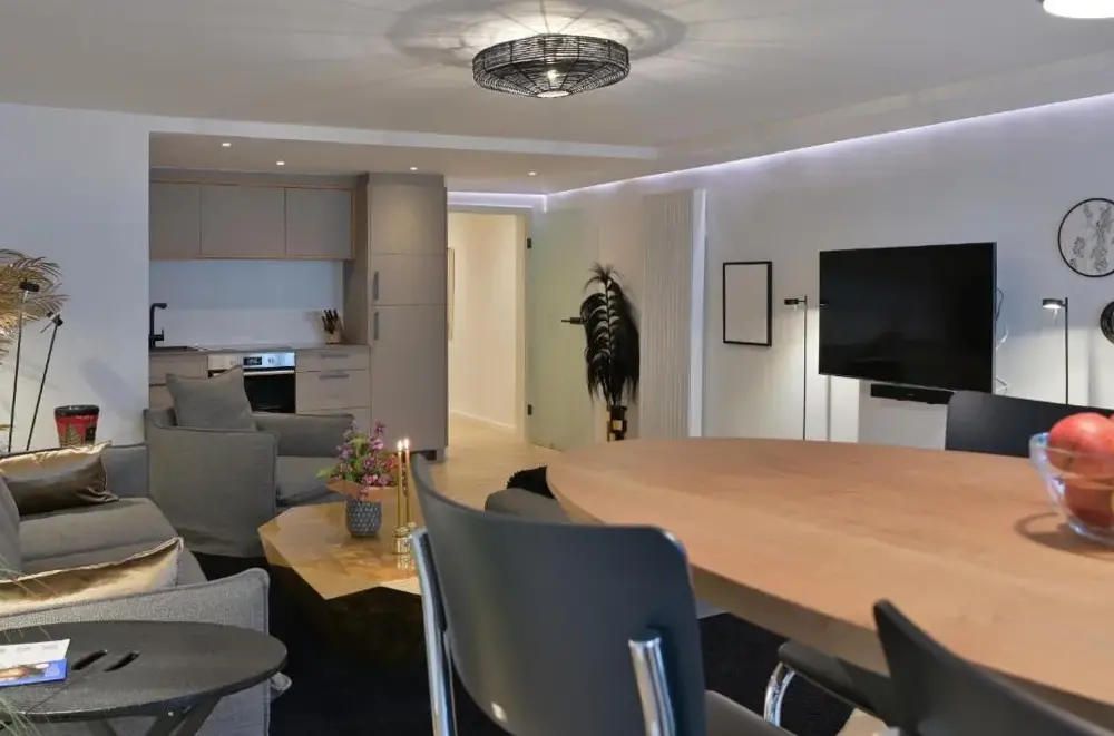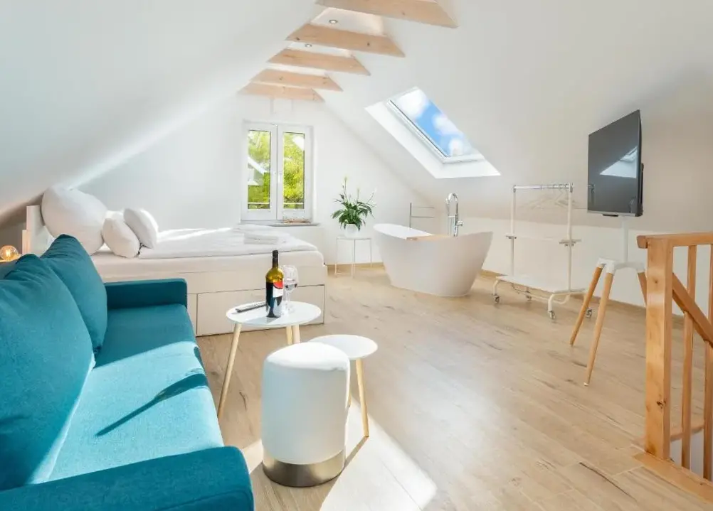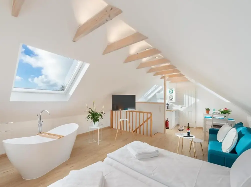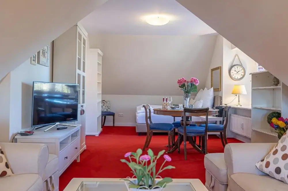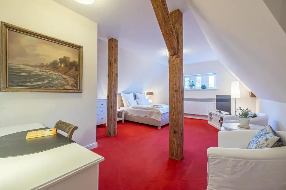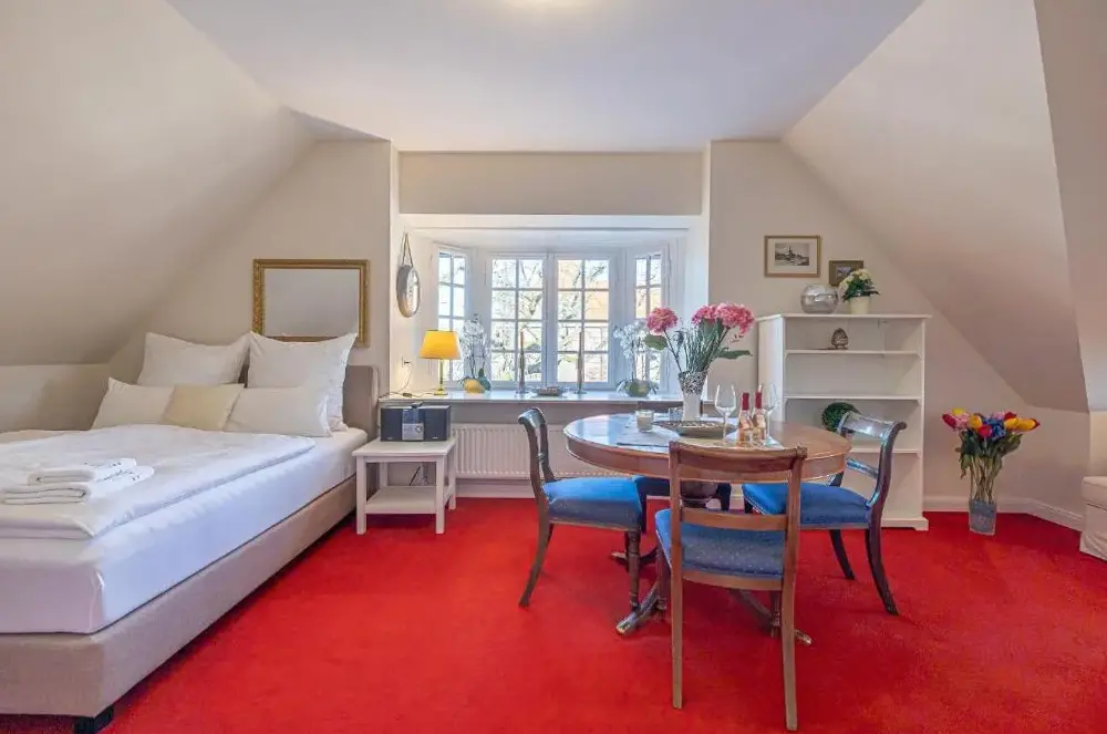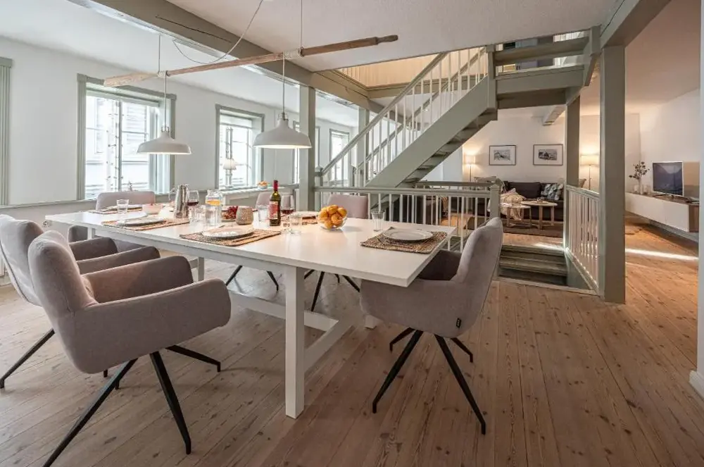 Ulteriori informazioni su Windstiller HafenFewo1846 – Villa Royal è un appartamento elegante all’interno di una villa liberty situata nel cuore di Flensburg, in Germania. L’alloggio si distingue per la sua ampia metratura e l’arredamento curato che fonde eleganza storica con comfort moderno, offrendo agli ospiti uno spazio accogliente e funzionale.