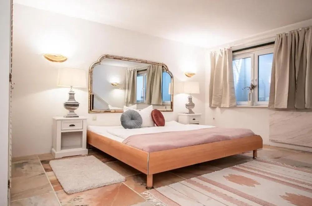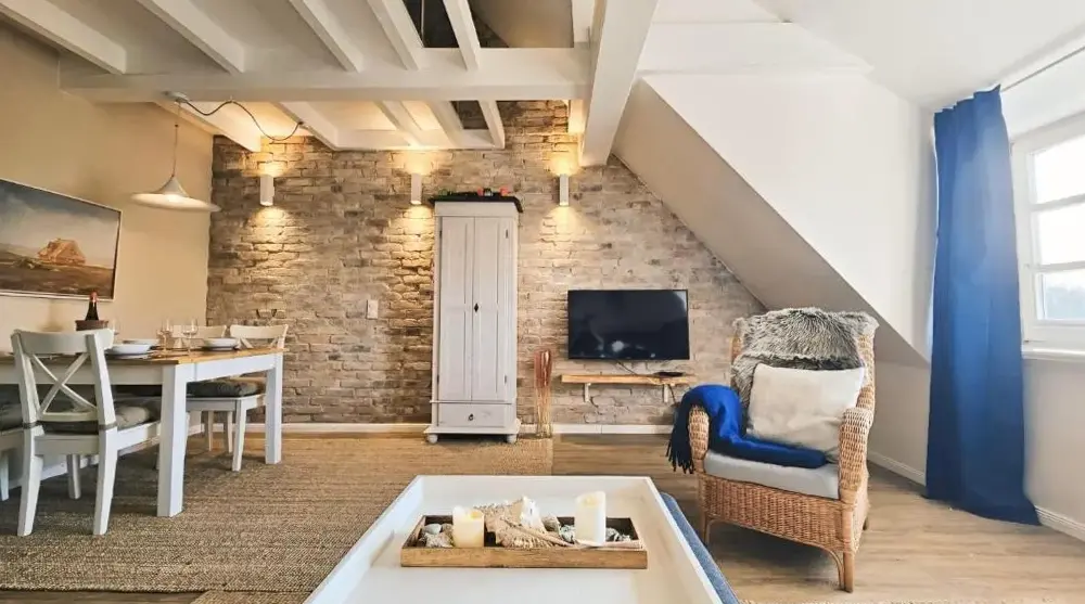 Haus Seelord Whg. Smutje に関する追加情報「ハウス・ゼーロード、カピターン号(Whg. Kapitän)」はドイツ北部のブラーデルップに位置し、ウェステライデ57番地から徒歩圏内です。このアパートメントは全室が地階にありながらも立地が良く、周辺には自然や観光スポットが豊富で便利な生活環境を提供しています。「ヴァッデン海国立公園」までは車で約1.5kmと近く、砂浜や動物園へも短時間でアクセス可能です。特に「ホワイト・クリフ」(850m)や「ムンクマルシュビーチ」、「ヴェニングシュテッドビーチ」など沿岸部の名所まで自転車でも楽々到着できます。また、「ブルームズフィッシュスペシャルティーズ」や「カルベコーヒーショップ」といった地域密着型の店舗もすぐそばにあるため、日常的な買い物にも便利です。「エスベルグ空港」までは遠目ではありますが(66km)、島内での移動には十分対応できる距離となっております。快適さを重視したインテリアと広めのスペー
