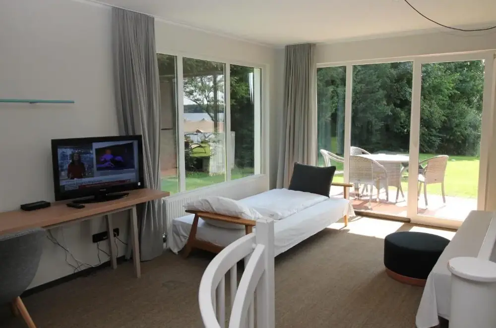 Junior-Suite am See에 대한 추가 정보플러너 제의 직접 접한 별장, 넓은 테라스와 편안한 공간으로 가족과 친구들의 휴식을 즐길 수 있습니다. 이 숙소는 바로 호수 옆에 위치해 있어 자연을 감상하며 쉴 수 있는 완벽한 장소입니다. 방은 넓고 잘 갖추어져 있으며, 특히 현관에 나있는 테라스는 잔디밭과 호수를 한눈에 볼 수 있도록 설계되어 있어요. 최대 5명이 안락하게 머무를 수 있고, 유아용 침대가 준비되어 있어 어린이 동반 여행에도 적합합니다. 주변에는 자전거 도로가 많아서 산책이나 사이클링도 쉽게 즐길 수 있는데요, 그 중에서도 모래길을 따라가는 경로는 특히 인기가 높아요. 또한 근처 호텔에서는 스웨임밍 풀과 식당을 제공하고 있어서 필요한 물건 구매나 식사까지 손쉽게 해결할 수 있습니다.