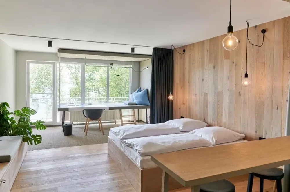 Design-Wohnung am Plöner See에 대한 추가 정보디자인호텔 와이트맨은 플론 강변의 애슈베르크에 자리잡고 있으며, 스파와 정원을 갖춘 독특한 공간으로 구성되어 있습니다. 호텔 내에서는 룸서비스와 레스토랑, 바를 이용할 수 있고, 무료 와이파이와 개인 주차장을 제공합니다. 각 객실에는 위성 채널이 탑재된 LCD TV와 함께 전용 욕실이 마련되어 있으며, 일부 객실에는 간단한 주방 시설도 포함되어 있습니다. 모든 방에 책상과 커피머신이 기본적으로 제공되며, 매일 아침 식사가 제공됩니다. 또한 호수 전망을 즐길 수 있는 벽난로가 있는 바가 운영되고 있습니다. 근처에는 900m 거리에 애슈베르크 중심지가 위치해 있으며, 메인 철도역까지 4.5km 정도 소요됩니다.