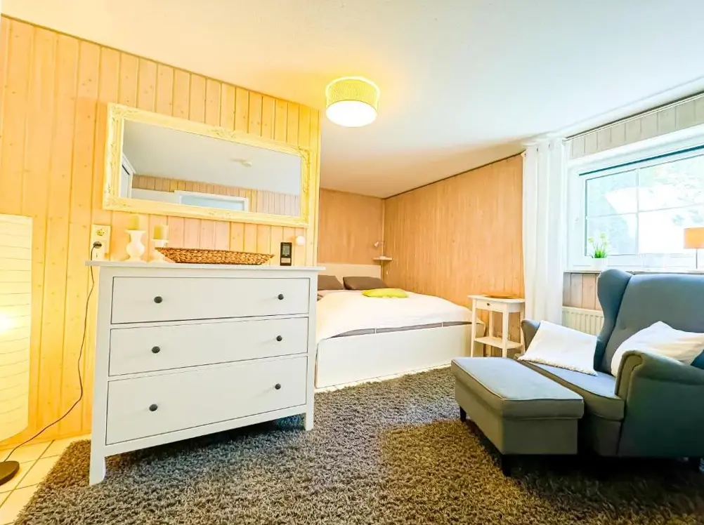 Waldmühle에 대한 추가 정보Ferienwohnung Am Ochsenweg는 독일 하우스비에 위치한 넓은 아파트로 테라스와 무료 Wi-Fi를 갖추고 있으며 개인 입구와 현장 주차 공간을 제공합니다. 현대적인 설비로 구성된 이 숙소는 간이 주방, 욕조 또는 샤워기를 포함한 전용 욕실, 커피 메이커, 냉장고, 식기세척기, 오븐, 스토브 탑, 토스터, TV 및 실외 가구 등 다양한 편의시설을 제공합니다. 지하철 역과 보행자 구역까지 쉽게 접근할 수 있는 유리한 위치를 자랑하며 플렌슈타트 대학교와 항구지역까지 차량으로 약 22마일 소요됩니다. 많은 게스트들이 넓은 공간과 우수한 시설에 만족하며 편안한 숙박 경험을 언급하였습니다. 특히 호스트 가족의 따뜻한 환영과 친절함 덕분에 여행 중에도 안정감을 느낄 수 있다고 평가되었습니다.