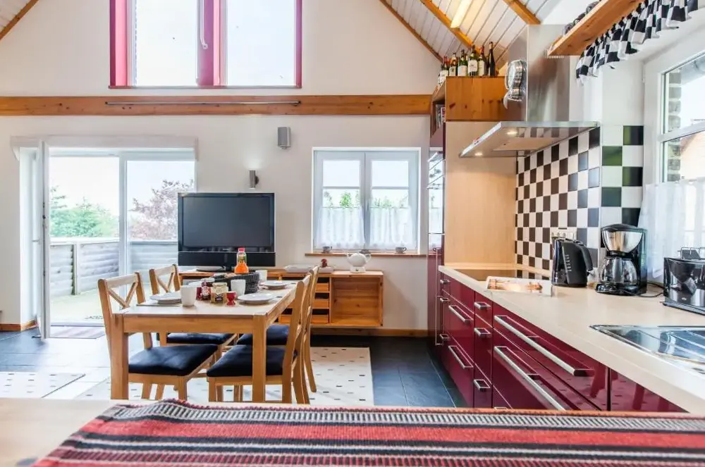 Reetdorf Geltinger Birk Künstlerkate Wildpferd에 대한 추가 정보Ostseeperle in Nieby는 독일 니브리에 위치한 편안한 숙박 시설입니다. 이 주택형 숙소는 2개의 침실과 욕실을 갖추고 있어 휴가 여행객에게 적합하며, 완비된 주방과 식당, 아늑한 소파베드가 마련되어 있습니다. 넓은 정원과 정원 전망의 테라스를 통해 자연 경관을 감상할 수 있고, 야외 좌석 공간에서는 여유 있는 시간을 보내기에 이상적인 환경입니다. 현대적인 편의 시설로 무료 Wi-Fi, 바베큐 기능, 그리고 무료 개인 주차장을 제공하며, 커피머신, TV, 세탁기도 함께 이용 가능합니다. 근처에는 크론스gaard 해변(4.