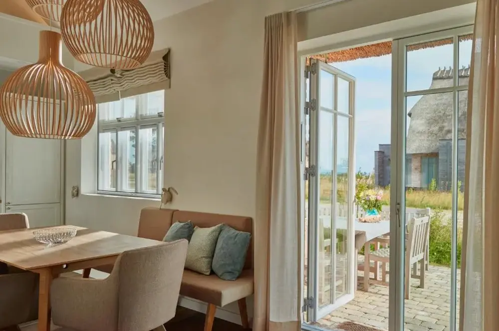 Reetdorf Geltinger Birk Atelierhaus Morsezeichen에 대한 추가 정보Reetdorf Geltinger Birk Malerhaus Seegras는 Nieby에 위치한 현대적인 휴가 주택으로 최근 리모델링되어 3개의 침실과 2개의 욕실을 갖추고 있습니다. 손님들은 무료 Wi-Fi, 사우나, 그리고 바다 전망의 테라스를 이용할 수 있으며 정원과 외부 좌석 공간이 마련된 야외 영역도 제공됩니다. 전기 자동차 충전소와 무료 현장 주차 공간이 있어 편리하게 이용 가능하며 지역 내 주요 관광지인 플레센뷔 대학과 플레센뷔 항구까지 차량으로 약 25마일 거리에 자리해 있습니다. 해양 박물관 또한 근처에 위치하고 있으며 자전거 타기나 산책 등 자연 체험 활동에도 최적의 환경입니다.