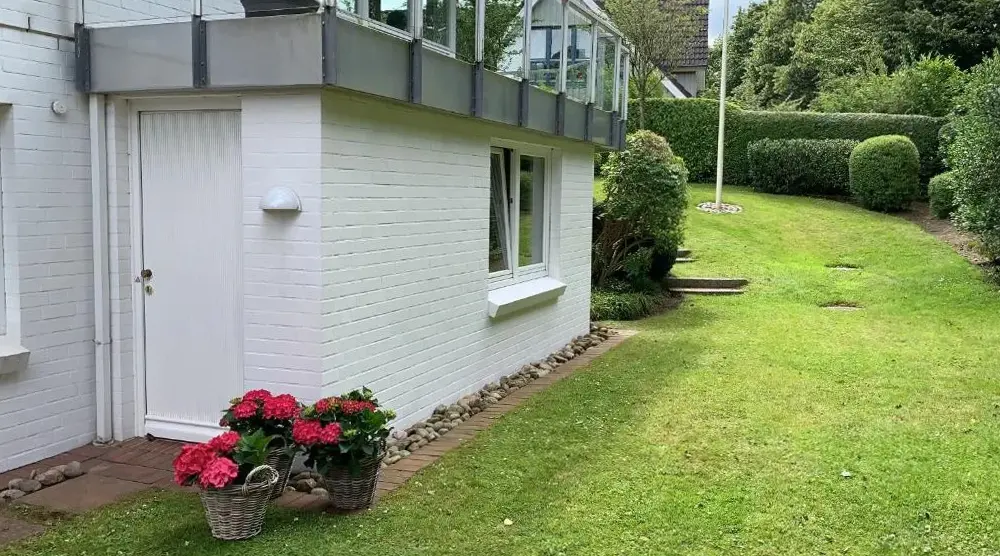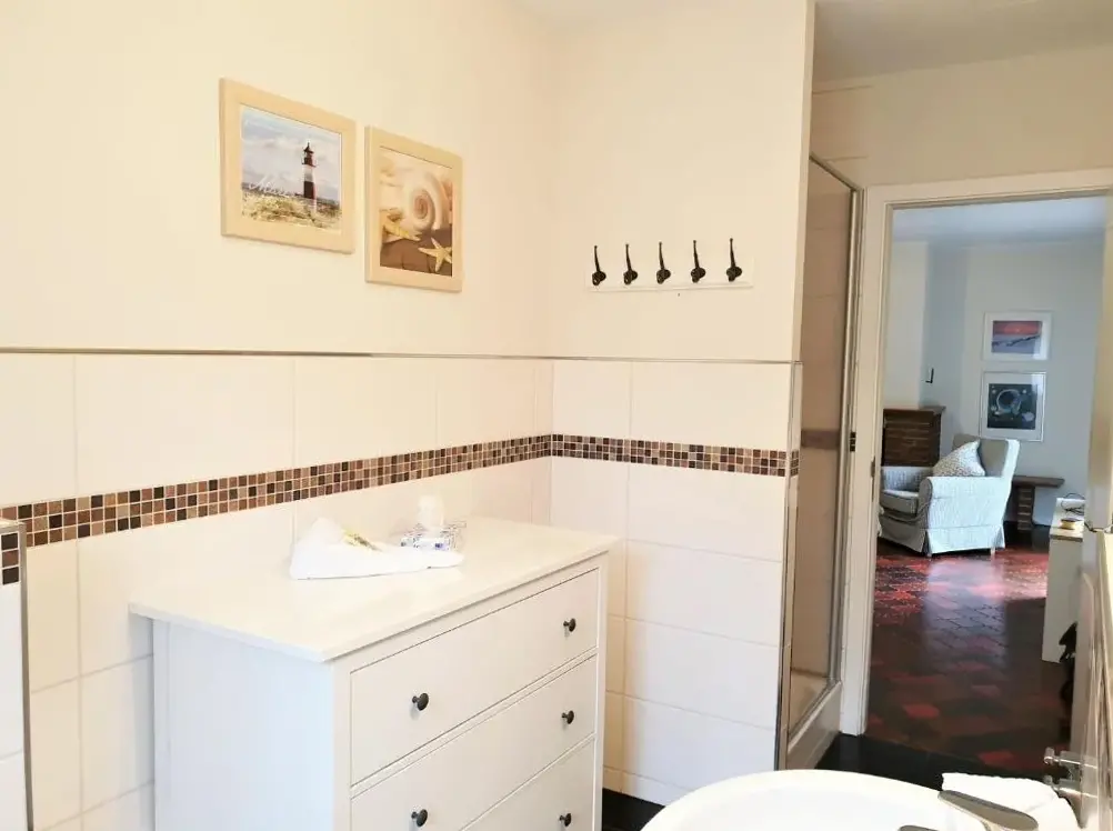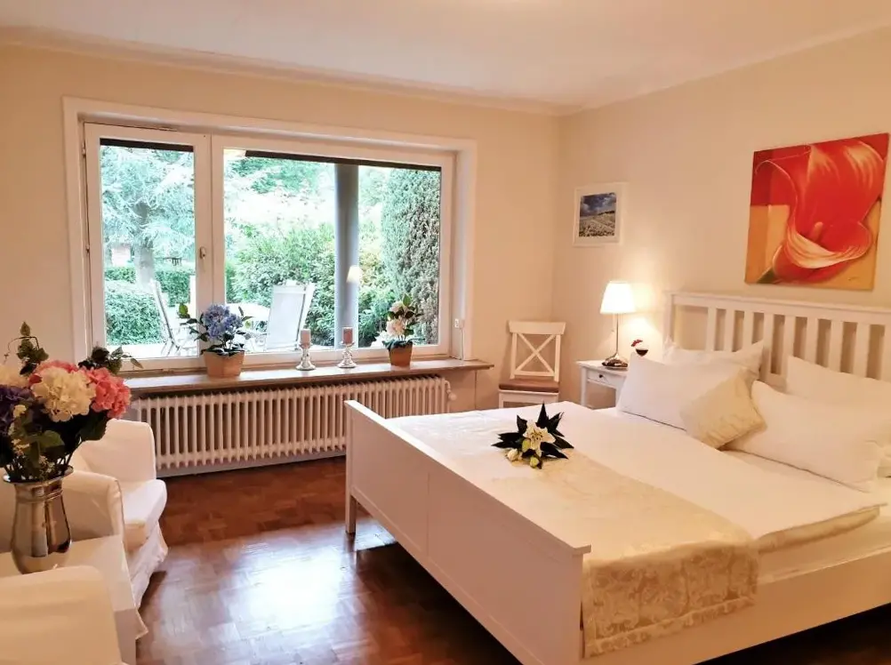 Meer informatie over Ferienwohnung in weißer Villa am KliffHaus Finisberg in Flensburg biedt een comfortabel appartement met één slaapkamer en een woonkamer. Het appartement op de begane grond heeft een terras en een tuin, wat ideaal is voor ontspanning. Gasten hebben toegang tot moderne faciliteiten zoals gratis internet, een volledig uitgeruste keuken, wasmachine en vaatwasser.