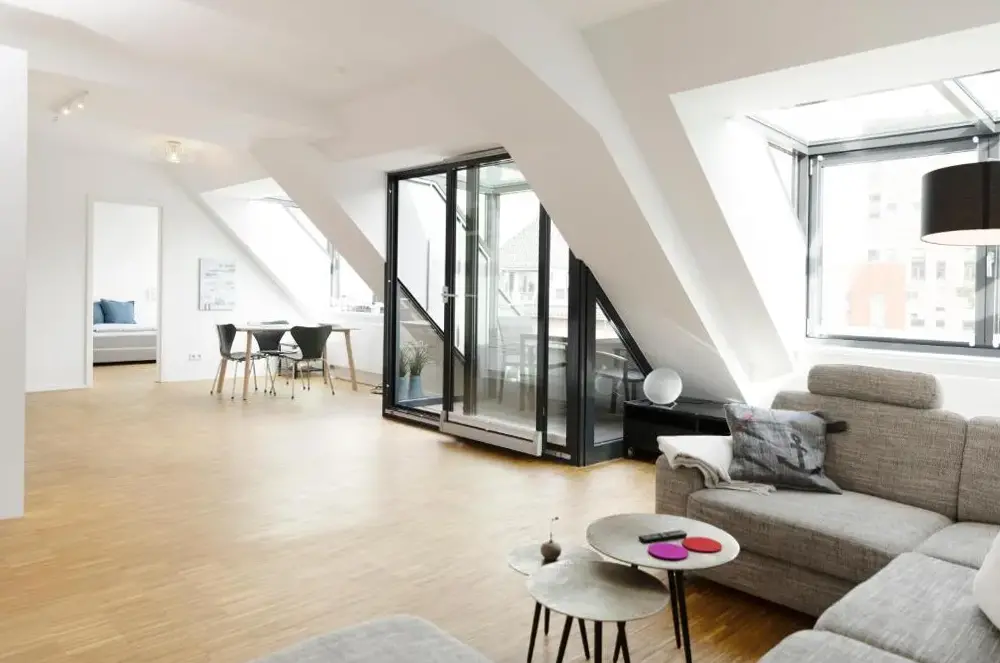 Meer informatie over Ferienwohnung Strandmuschel in Flensburg, SonwikPenthouse am Glockenturm biedt een ruim appartement met slaapkamer en woonkamer, gesituëerd aan Friesische Straße 10 in Flensburg. Het appartement heeft een volledig uitgeruste keuken, wasmachine en gratis wifi. De moderne voorzieningen omvatten een koffiezetapparaat, vaatwasser en tv. Daarnaast is er een zithoek buiten met meubels en een eettafel. Gratis privéparkeren is beschikbaar op locatie.