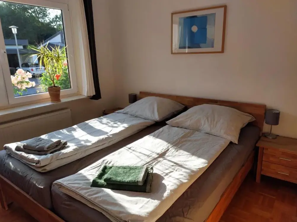 Ferienwohnung Gutzeit in Flensburg biedt een ruim appartement met twee slaapkamern en een woonkamer. Het pand heeft parketvloeren, een volledig uitgeruste keuken en een bureau. Gasten kunnen gebruik maken van gratis wifi, een zonnebrand en privé-check-in/check-outdiensten. Er zijn extra faciliteiten zoals een coffeeshop, zitplaatsen buiten, familiekamers en fietsparkeren.