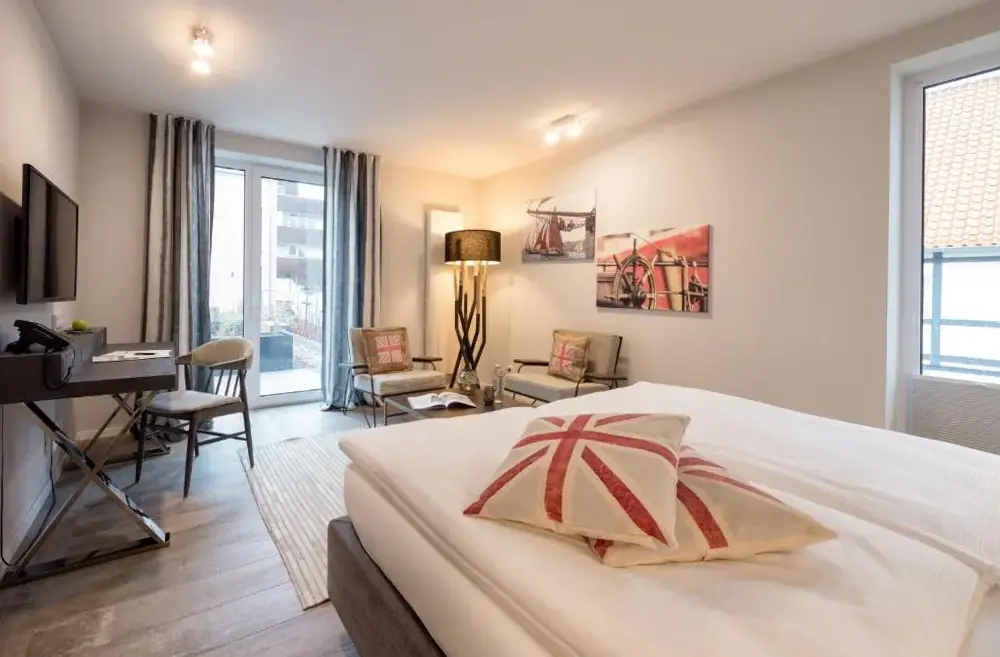 Meer informatie over Ferienwohnung Schiffbrücke 40Studioapartment am Hafen biedt een ruim en modern ingericht appartement met een slaapkamer, badkamer en comfortabele woonkamer. Het appartement heeft een volledig uitgeruste keuken met koffiezetapparaat, koelkast, oven, fornuis, magnetron en broodrooster. Er zijn extra faciliteiten zoals wasmachine, haardroger, werkbureau, tv en gratis toiletartikelen beschikbaar.