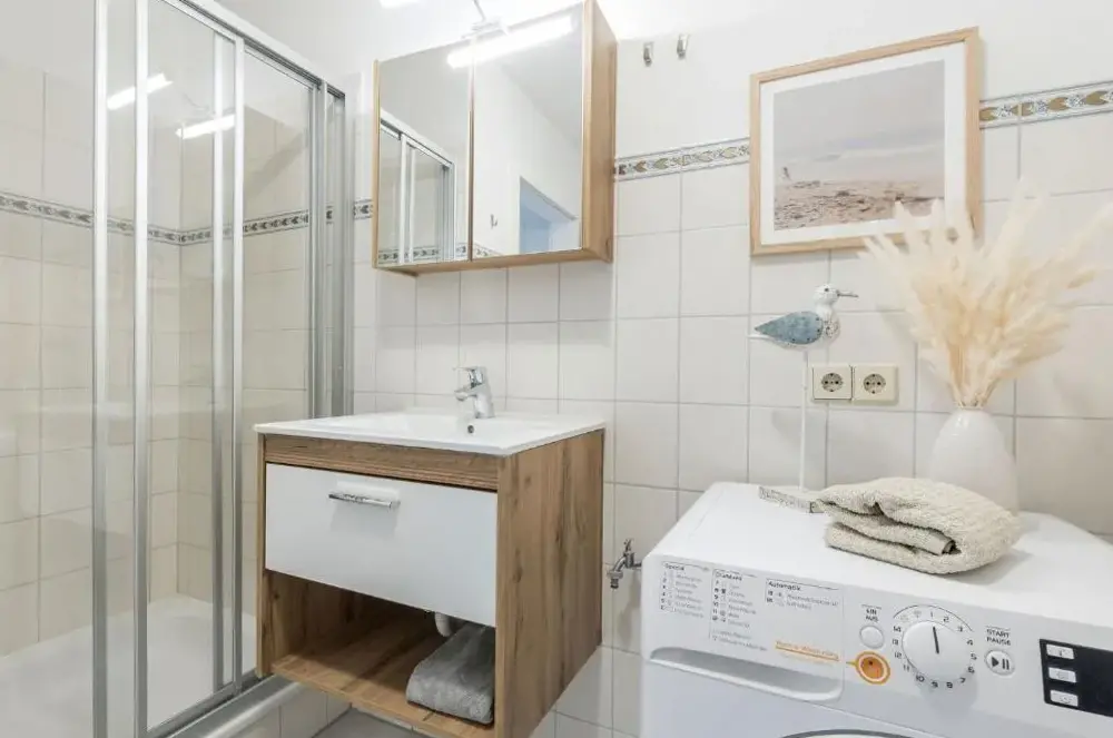 Mais Informações sobre Ferienwohnung WestwärtsO Ferienhof Ralf Becker Nr2 é um apartamento de dois quartos situado em Westfehmarn, na Alemanha. Oferece comodidades modernas como uma cozinha compacta equipada com máquina de café, lava-louças e forno, além de uma máquina de lavar, churrasco, secador de cabelo e mobiliário ao ar livre. A propriedade conta com um jardim e acesso à internet gratuita.