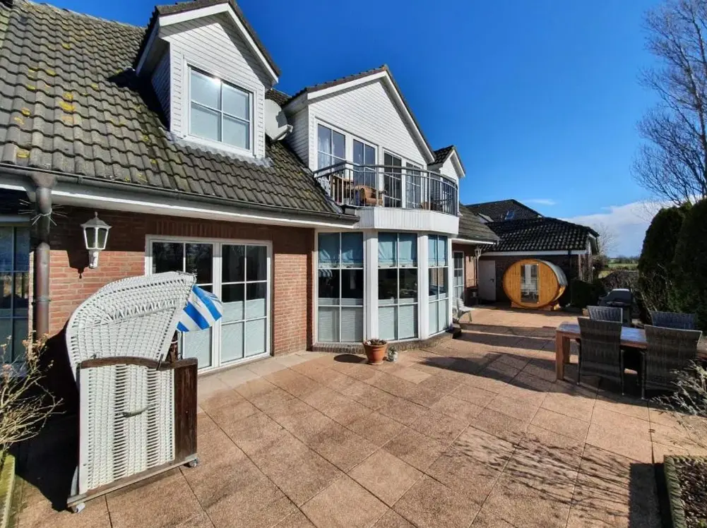 Mais Informações sobre Kleine Freiheit FerienhausLandhaus - Villa FehAmore é uma residência de férias ampla situada em Westfehmarn, oferecendo espaço para até seis pessoas. A propriedade conta com quatro quartos e três banheiros, além de uma sala de estar e cozinha totalmente equipada. Os hóspedes podem aproveitar comodidades como banheira de hidromassagem, sauna, terraço e área de churrasco.