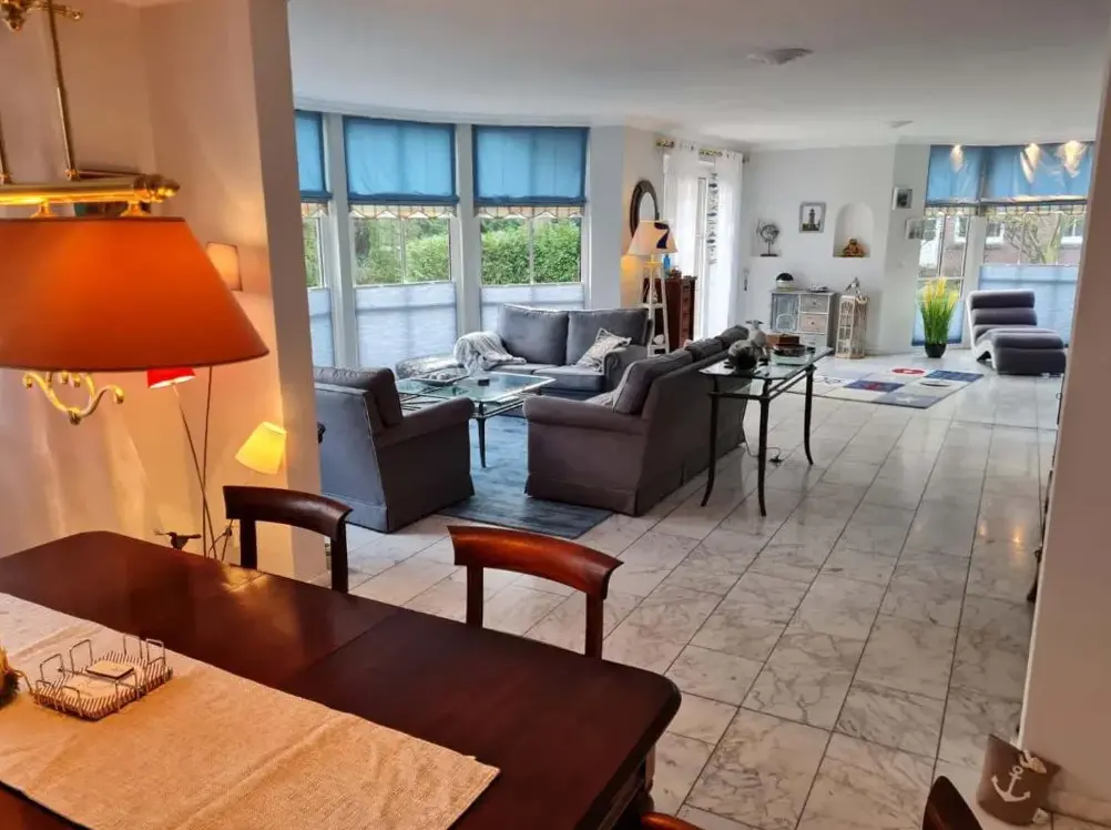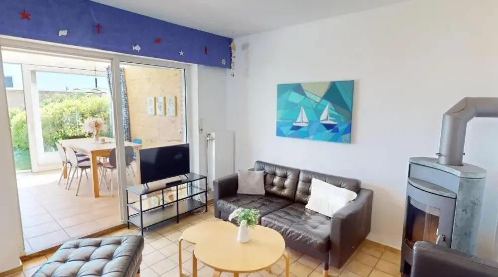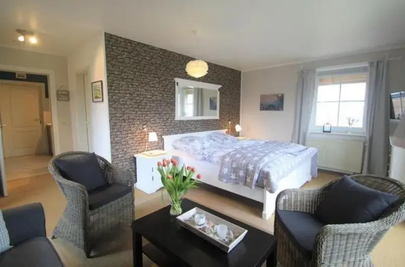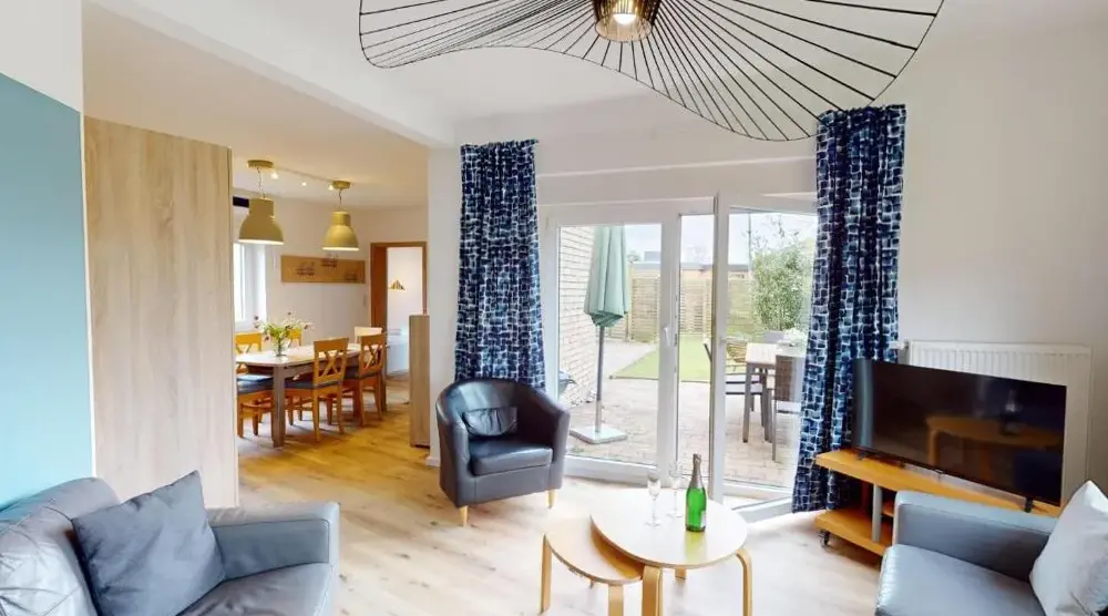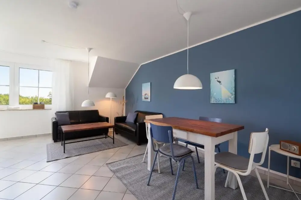 Mais Informações sobre Auszeit & Meer in WulfenO Ostseeblick Lemkenhafen em Fehmarn é um apartamento espaçoso e confortável ideal para quem busca tranquilidade e proximidade com a natureza. Localizado em Mühlenweg 36, 23769 Fehmarn, o imóvel oferece um ambiente acolhedora com uma sala ampla que conta com sofá-cama e área de jantar.